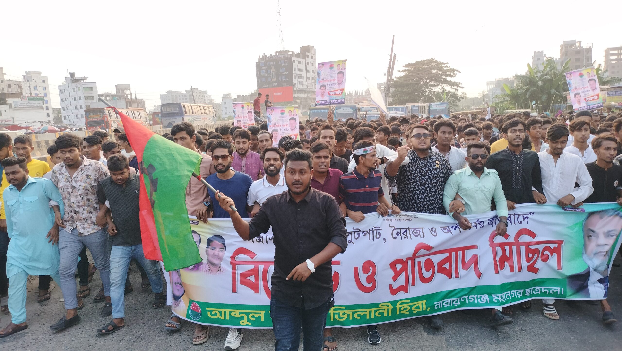 মিছিলটির নেতৃত্ব দেন, সিদ্ধিরগঞ্জ থানা ছাত্রদলের সভাপতি ও নারায়ণগঞ্জ মহানগর ছাত্রদলের সভাপতি প্রার্থী আব্দুল কাদির জিলানী হিরা।