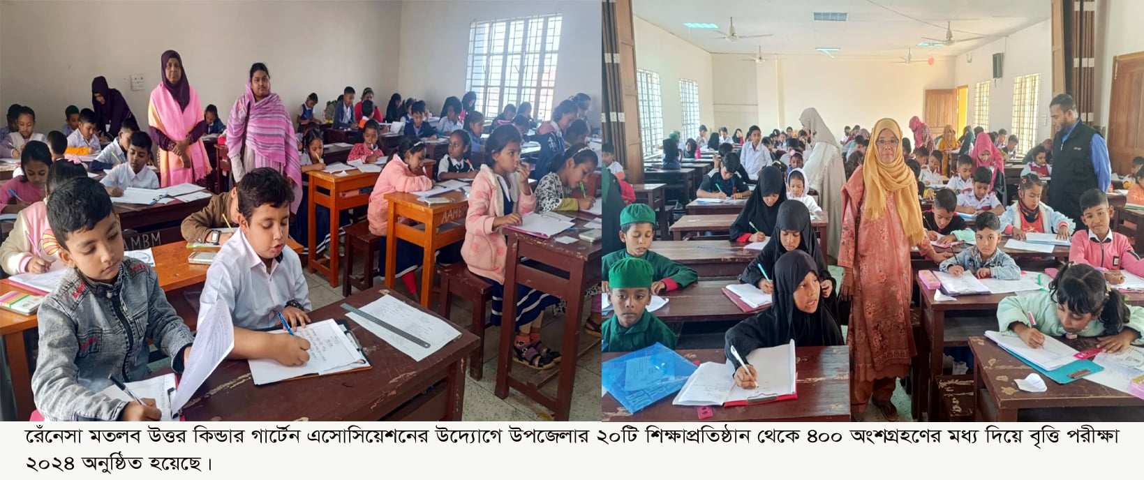 রেঁনেসা মতলব উত্তর কিন্ডার গার্টেন এসোসিয়েশনের উদ্যোগে উপজেলার ২০টি শিক্ষাপ্রতিষ্ঠান থেকে ৪০০ শিক্ষার্থীদের অংশগ্রহণের মধ্য দিয়ে বৃত্তি পরীক্ষা ২০২৪ অনুষ্ঠিত হয়েছে।