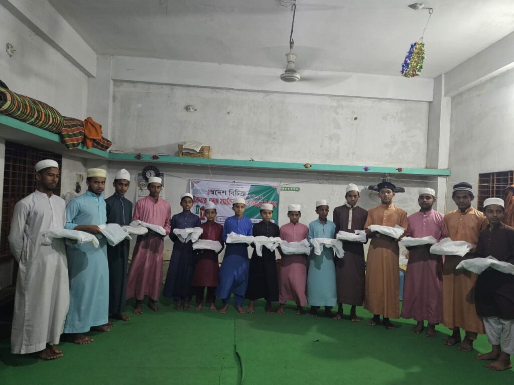 শুক্রবার (১৩ই রমজান, ১৪ই মার্চ ২০২৫) এই মহতী আয়োজনে এতিম শিশুদের সঙ্গে ইফতার ও দোয়া মাহফিলের আয়োজন করা হয়। স্বদেশ বিচিত্রার সম্পাদক ও প্রকাশক অশোক ধর-এর সার্বিক সহযোগিতায় মাদ্রাসার শিক্ষার্থীদের মাঝে ইফতার পরিবেশন করা হয়। ইফতারের পর ঈদ শুভেচ্ছা হিসেবে শিক্ষার্থীদের হাতে কোরআন শরীফ, পাঞ্জাবি, আতর, জায়নামাজ, টুপি ও তসবিহ তুলে দেওয়া হয়। ঈদ উপহার পেয়ে শিক্ষার্থীরা আনন্দে আপ্লুত হয়ে স্বদেশ বিচিত্রার উত্তরোত্তর সাফল্য কামনা করেন।