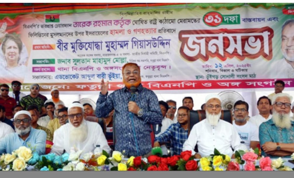 শনিবার (১২ এপ্রিল) বিকেলে ফতুল্লার ভূঁইগড় এলাকায় ফতুল্লা থানা বিএনপি আয়োজিত এক জনসভায় প্রধান অতিথির বক্তব্যে তিনি এসব কথা বলেন। সভাটি অনুষ্ঠিত হয় বিএনপির ভারপ্রাপ্ত চেয়ারম্যান তারেক রহমান ঘোষিত ৩১ দফা বাস্তবায়ন এবং ফিলিস্তিনে চলমান গণহত্যার প্রতিবাদে।