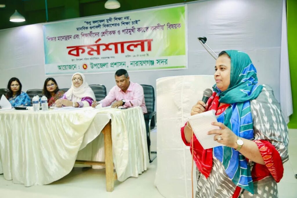 জেলা প্রশাসন, নারায়ণগঞ্জ এর নির্দেশনায় নারায়ণগঞ্জ সদর উপজেলায় “শুধু ফলাফলমুখী শিক্ষা নয়, মানবিক গুণাবলী বিকাশেও শিক্ষা চাই” স্লোগানে মাধ্যমিক ও উচ্চ মাধ্যমিক পর্যায়ে শিক্ষার সার্বিক মানোন্নয়ন ও শিক্ষার্থীদের শ্রেণীকক্ষ ও পাঠমুখী করতে এবং শিক্ষাবান্ধব পরিবেশ সৃষ্টিতে করণীয় বিষয়ক কর্মশালা আয়োজন করা হয়েছে। উপজেলা নির্বাহী অফিসার জনাব মোহাম্মদ জাফর সাদিক চৌধুরীর সভাপতিত্বে সোমবার সদর উপজেলা পরিষদ অডিটোরিয়ামে আয়োজিত এ কর্মশালায় মূল প্রবন্ধ উপস্থাপন করেন জাতীয় শিক্ষাক্রম ও পাঠ্যপুস্তক বোর্ড (এনসিটিবি) এর গবেষণা কর্মকর্তা জনাব নুরুন্নেসা সুলতানা।