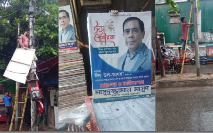 গ্রীন এন্ড ক্লিন কর্মসূচির অংশ হিসেবে ব্যানার, ফেস্টুন ও সাইনবোর্ড অপসারণ শুরু করলেন মাসুদুজ্জামান
