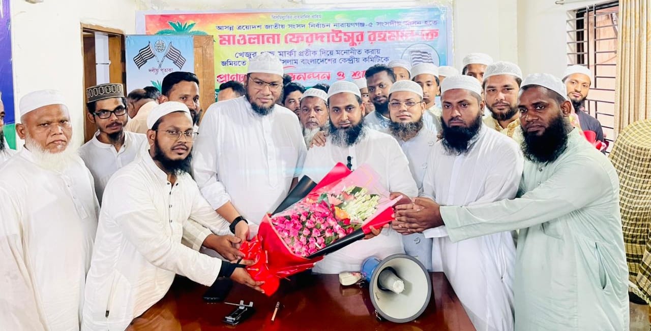 বুধবার ৩০ শে জুলাই নারায়ণগঞ্জ সদর থানা বাংলাদেশ জমিয়েত ইসলাম আয়োজিত, নারায়ণগঞ্জ সদর থানার অন্তর্গত চাষাড়া কার্যালয়ে কমিটির নেতৃবৃন্দরা বলেন, “ইসলামী আদর্শ ও জাতীয় স্বার্থ সংরক্ষণে মাওলানা ফেরদাউসুর রহমান একজন যোগ্য, নীতিবান এবং আমানতদার আলেম। তাঁকে মনোনয়ন প্রদান করে কেন্দ্রীয় কমিটি একটি সময়োপযোগী, সঠিক এবং সাহসী সিদ্ধান্ত নিয়েছে।”
