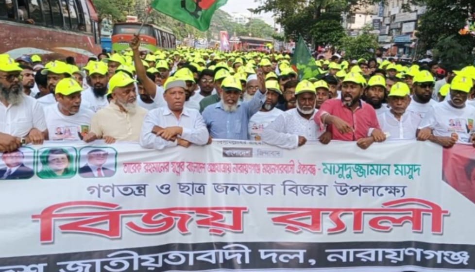 ঢাকায় কেন্দ্রীয় বিজয় র্যালি শুরু করার আগে বিএনপি ও অঙ্গসংগঠনের নেতৃবৃন্দ নারায়ণগঞ্জবাসীর প্রতি শুভেচ্ছা জানিয়ে বক্তব্য রাখেন। এসময় তারা গণতন্ত্র পুনরুদ্ধারের আন্দোলন এবং লুটপাটকারীদের বিচারের দাবিতে মাসুদুজ্জামানের নেতৃত্বে ঐক্যবদ্ধ থাকার আহ্বান জানান।