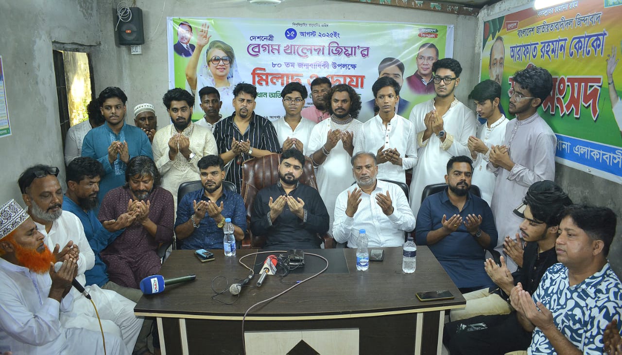 ১৫ আগষ্ট দেশনেত্রী বেগম খালেদা জিয়া'র ৮০তম জন্মবার্ষিকী উদযাপন উপলক্ষে নারায়ণগঞ্জ সদর থানা জিয়া সাংস্কৃতিক সংগঠন (জিসাস) এর পক্ষে আলোচনা সভা ও মিলাদ মাহফিলের আয়োজন করেছে।