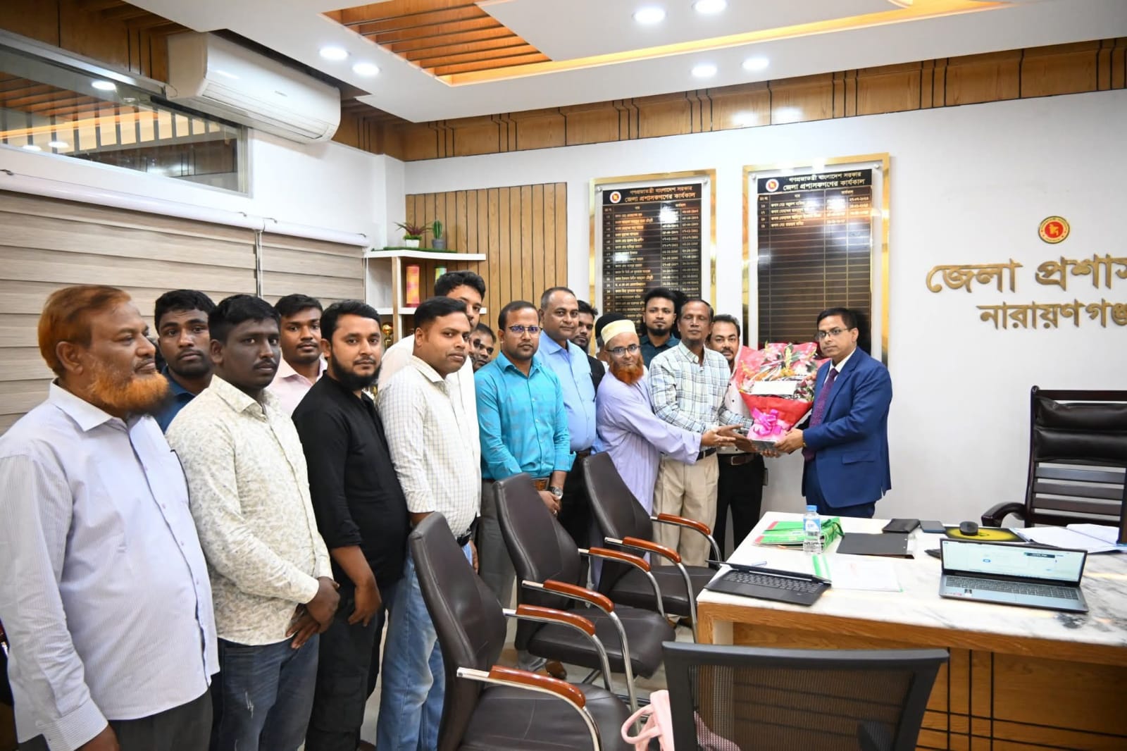 সরকারী গাড়ি চালক সমিতির পক্ষ থেকে নারায়ণগঞ্জের নবাগত ডিসি রায়হান কবিরকে ফুলেল শুভেচ্ছা