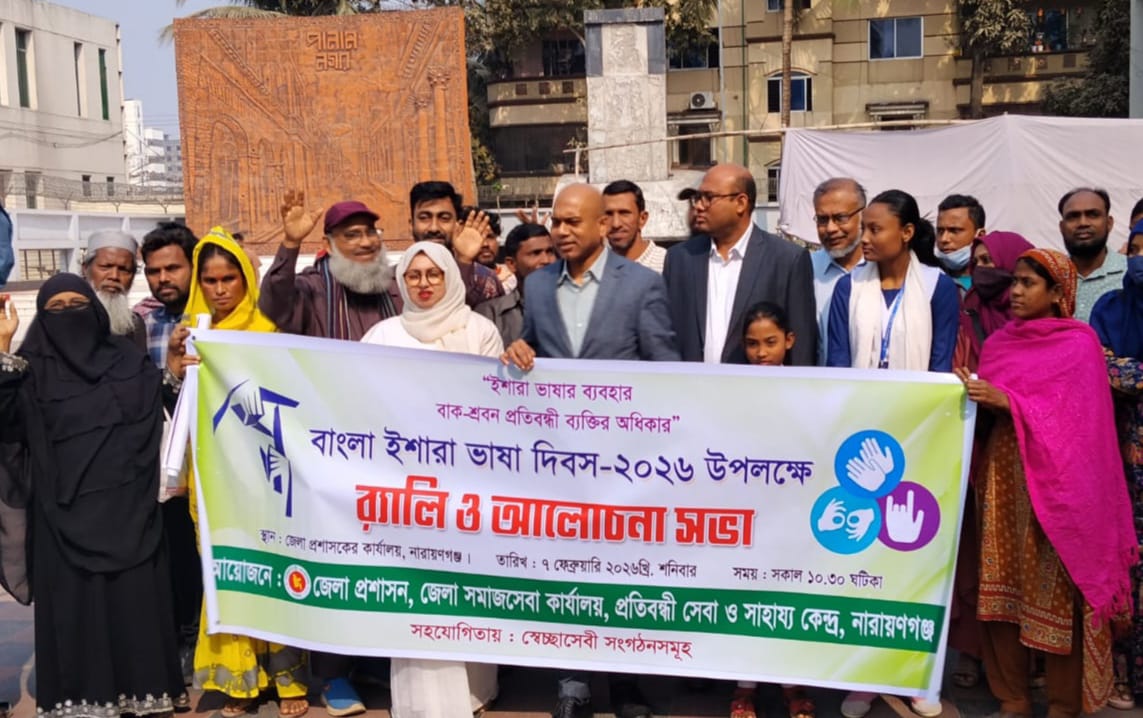 নারায়ণগঞ্জে বাংলা ইশারা ভাষা দিবস-২০২৬ উপলক্ষে র‍্যালি ও আলোচনা সভা অনুষ্ঠিত