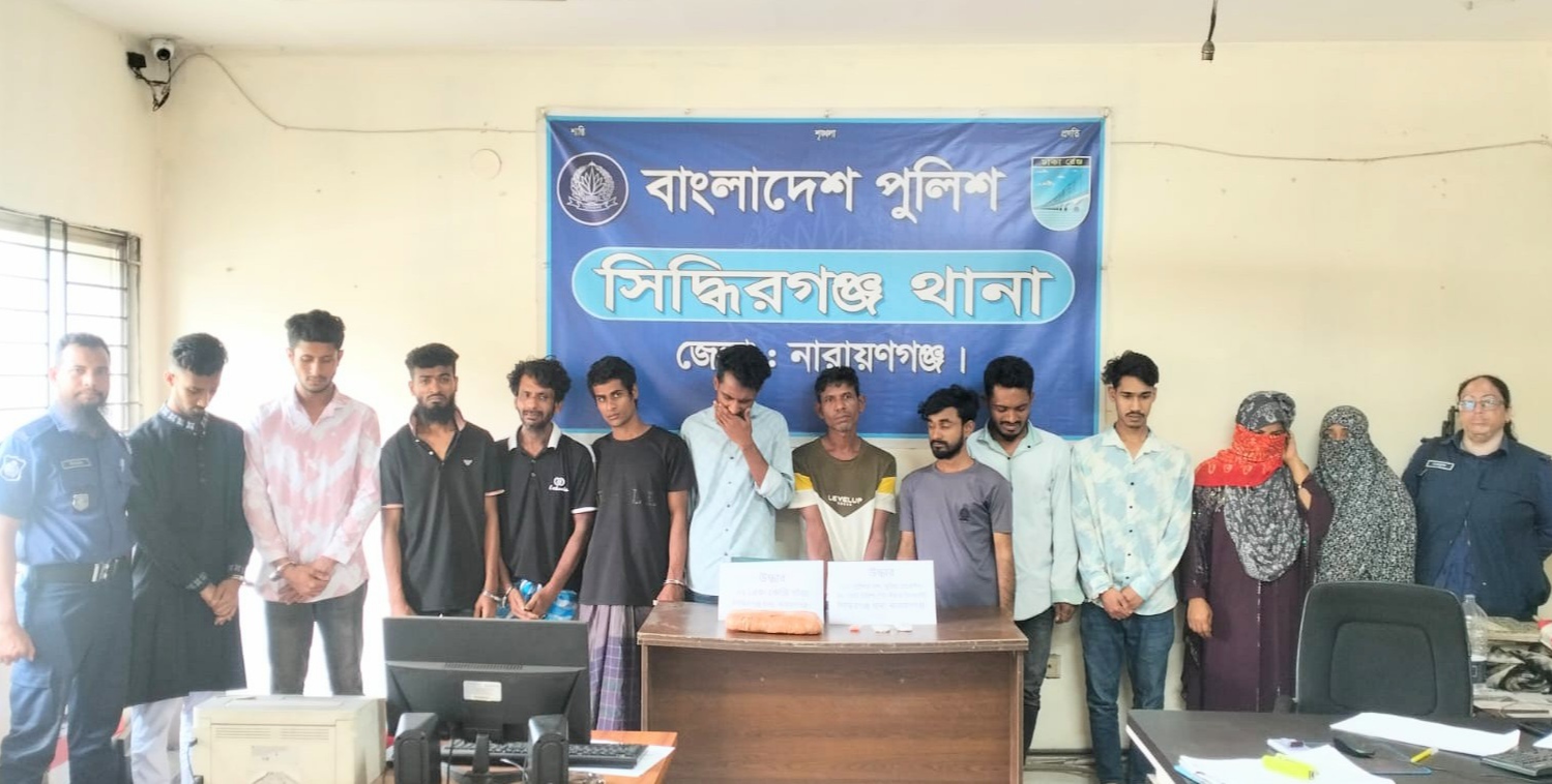 সিদ্ধিরগঞ্জ থানা পুলিশ কর্তৃক গাঁজা,হেরোইন,ইয়াবা ও ০১ টি প্রাইভেটকারসহ ১২ জন মাদক কারবারি গ্রেফতার