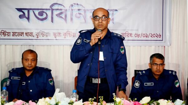 নির্বাচনকে সামনে রেখে পুলিশ সুপার মোঃ জসিম উদ্দিন এর সাথে জনসাধারণের মতবিনিময় সভা