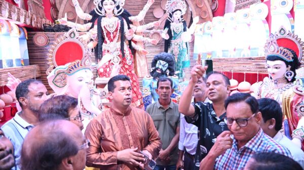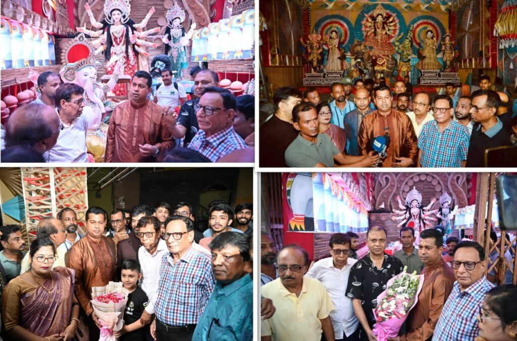 জেলা প্রশাসক তাঁর বক্তব্যে বলেন,”সনাতন ধর্মাবলম্বীদের আসন্ন দুর্গাপূজা উপলক্ষে আমরা নিয়মিত পূজামণ্ডপ গুলো পরিদর্শন করছি । নারায়ণগঞ্জে সাম্প্রদায়িক সম্প্রীতি বজায় রেখে একটি উৎসবমুখর পরিবেশে দুর্গাপূজা উদযাপিত হবে । নারায়ণগঞ্জের পূজার সৌন্দর্য্য উপভোগ করতে জেলার বাইরে থেকেও দর্শনার্থী এসে থাকে । তাই প্রতিবারের ন্যায় এবারো পূর্ণ নিরাপত্তা নিশ্চিতে আমাদের প্রশাসন ও সকল আইনশৃঙ্খলা বাহিনী একযোগে দায়িত্ব পালন করবে। ফলে আমরা সকলে মিলে সুন্দরভাবে এই দুর্গাপূজা উদযাপন করতে পারবো ।এ সময় পরিদর্শনকালে উপস্থিত ছিলেন নারায়ণগঞ্জ জেলা পূজা উদযাপন কমিটির সভাপতি শংকর কুমার দে, সাধারণ সম্পাদক শিপন সরকার, নারায়ণগঞ্জ মহানগর পূজা উদযাপন কমিটির সভাপতি কৃষ্ণ পদ সাহা, সহ-সভাপতি উত্তম কুমার,সাহা, সাধারণ সম্পাদক সুশীল দাস, নারায়ণগঞ্জ মহানগরের হিন্দু-বৌদ্ধ-খ্রিস্টান ঐক্যফ্রন্টের সদস্য সচিব খোকন সাহা ছাড়াও আরো অন্যান্য কমিটির নেতৃবৃন্দ উপস্থিত ছিলেন।